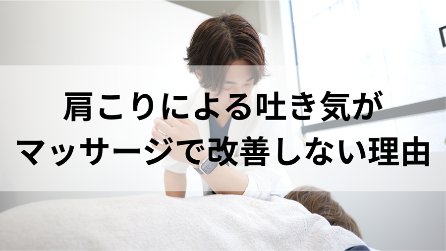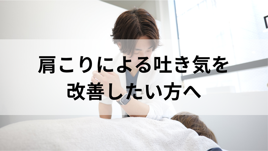 肩こりで吐き気が起こるのはなぜ?基本メカニズム 「肩こりがひどくなると吐き気が出る」という症状に悩んでいる方は少なくありません。] 一見すると関係がなさそうに思えるこの2つの症状ですが、実際には首・肩・胸・呼吸・自律神経が複雑に関係しており... -