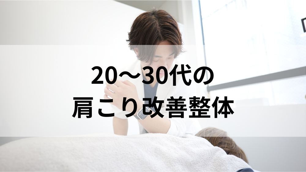 20〜30代に肩こりが多い理由 近年、肩こりは40代以降だけでなく、20〜30代の若い世代で急増しています。 要因は「運動不足」よりも、デスクワーク・スマホ利用・座り姿勢のクセなどによる体の使い方の偏り。 特に巻き肩やスマホ肩が習慣化し、肩・首・背中... -