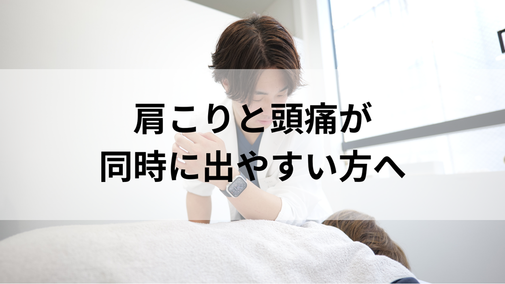 肩こりと頭痛が同時に出る主な原因 肩こりと頭痛が一緒に出る方は、首・肩・胸郭のどこかが過剰に緊張し、血流や神経の通りが悪くなっている状態です。 特に「姿勢の崩れ」「呼吸の浅さ」「筋膜の癒着」が重なると、肩こりが悪化し、それに引きずられて頭... -